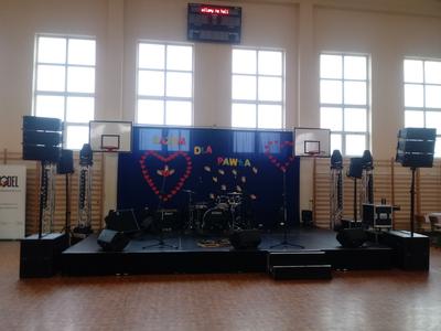 Występy miały profesjonalną oprawę. Modułowa scena, oświetlenie, nagłośnienie i cała obsługa techniczna to prezent od jednego z Rodziców naszej szkoły Pana Adama Dolińskiego ze wsparciem Pana Krzysztofa Sidora.